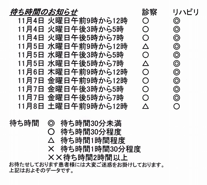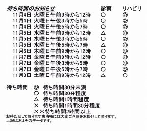 待ち時間のお知らせ(11月4日~11月8日)